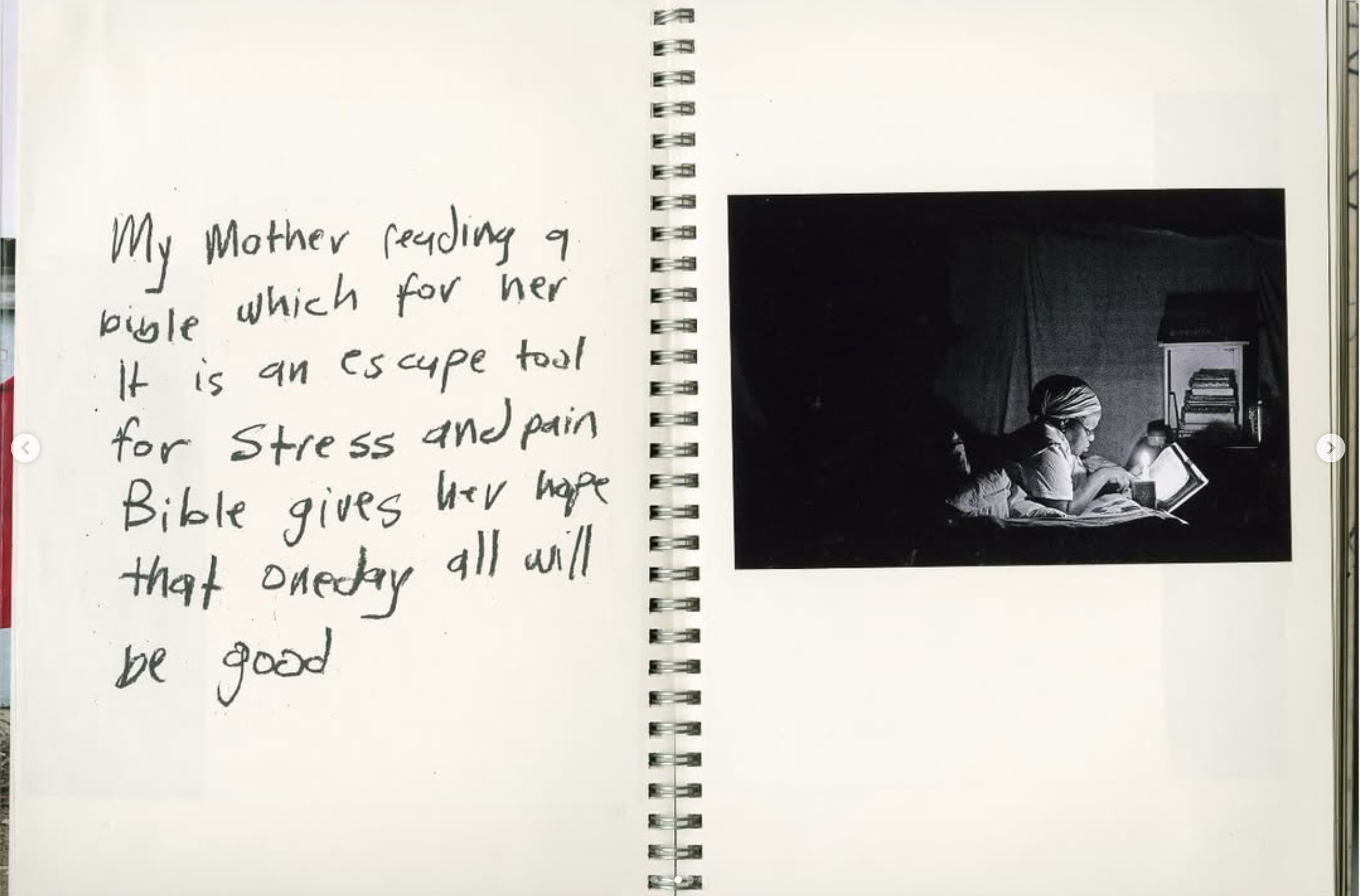 “My mother reading a Bible, which for her is an escape tool from stress and pain. The Bible gives her a sense of hope that one day all will be good. Thokoza, Johannesburg, South Africa. 2015.” – Lindokuhle Sobekwa